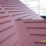 屋根からの雪を落ちないようにするのがストッパールーフです、特に急勾配の屋根なので、補強用のアングルをハゼの立ち上がりに入れてます。また谷の下には強制的に溶かすように理想通り200Vのヒーターも入れてます。ストッパールーフには必ず必要な工事でヒーターの長さは会社によって変わります。特に今年は雪が多くて大変ご迷惑をお掛けしましたが、とても喜んでいただきまして、ありがとうございます。