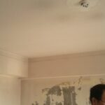 リビングの照明をダウンライトに変更がご希望でしたが、天井がコンクリート仕上げのため、天井をダウンライトの13㌢を造作して取付と壁際に間接照明も造作して取付になりました。